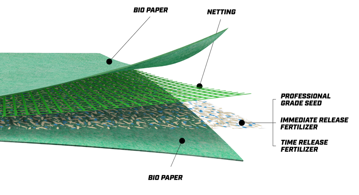 GrowTrax is a highly sustainable solution that uses less water, minimizes labor, easy to handle & install resulting in stronger roots that grow thick lush grass. With direct soil contact and precision seed coverage, GrowTrax is the perfect lawn solution.